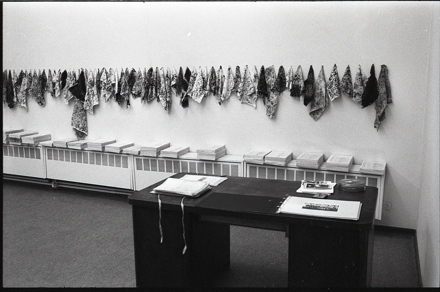 Op verschillende installatiezichten is het filmblik van Rocky Tiger te zien. De voorwerpen in de installatie hebben geen vaste plaats. De ene keer hing het filmblik aan de muur (zie Afbeelding 2), de andere keer lag het op tafel (zie Afbeelding 3). De film zelf werd niet getoond.